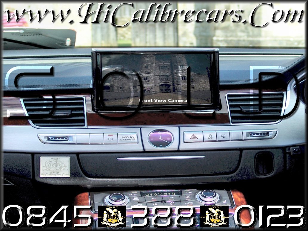 \\VAT QUALIFIER// 2010 [60] AUDI – A8 4.2 TDi Quattro – SE FaceLift 4-Door Saloon. v8 32valve Turbo DIESEL, 350BHP, 800Nm 8Speed Tiptronic Auto. This one owner Audi Flag-ship has now been SOLD. She was so highly specified that no other car currently advertised on the net came anywhere close to similar in magnitude of spec and exclusivity. She comes with F/A/S/H + 32500 warranted miles. Finished in exquisite Night Blue Pearl metallic with soft Black/Grey nappa supple leather interior. This like new MEGASPEC Audi flagship has nothing out there that even comes close to similar in magnitude of Spec and Exclusivity. When new she is believed to have cost well over £75K. The car has been fully serviced from new on 3 separate occasions by Audi and the last service was carried out only recently. The exclusive spec includes Front Night Vision Colour Camera/ Rear Vision Colour Colour Camera with guide lines & sensor Displays/ HDD Satellite Navigation System Pro MID with Touchpad controls/ Digi-TV/ Digi-DAB Radio/ Front & Rear Park distance control with PICTOGRAM Displays/ Multi-Media Entertainment System with iPhone, iPod, iPad control/ DVD – Movie Player/ Bluetooth Telematics GSM phone system/ Sports suspension system/ NEW 20” Seven-Twin spoke AUDI Designer alloys with 275/35 ZR20 102Y High Performance Extra Load Sports CONTACT-2 tyres engineered by CONTINENTAL in Germany/ Flat Tyre Indicators/ Keyless-GO with Finger Press Start/Stop button, Open/Close functions/ LED Day Running Lights/ Bluetooth Audio Feed System/ BOSE S/S System with Voice Control/ Electric Pop-up Sun Roof/ DriveSelect with Comfort, Auto, Dynamic Electronic Chassis Control modes/ Electro-Mechanical Parking Brake/ MMI ‐ Multi Media Interface control system with HDD/ Six CD/DVD Auto‐changer for movies & MP3 Player CDs/ Xenon Dynamic Bending Headlights/ Adaptive 4-corner air suspension with electronic shock absorption control/ Comfort Sports Seats with complete electromechanical control functions/ Regenerative Breaking System 12.5V/ Boot Lid auto release with soft-touch servo-close function/ Electronic climate control (ECC)/ Heated seats with lumbar functions with individual controls/ Memory Seats in the Front - Driver + Passenger. LIST GOES ON & ON. This one owner Audi Flag-ship has now been SOLD. - PLEASE click "View Options & Features" below for complete Options & Extras DATA sheet & click on "View Narrative" below for a Full and descriptive as well as informative NARRATIVE on this INCREDIBLY UNIQUE bespoke STUNNER. =>=>=> To view over 90 HIGH DEFINITION images please clink on the Link =>=>=> http://www.hicalibrecars.com/2560x1600/ld60lyh.php