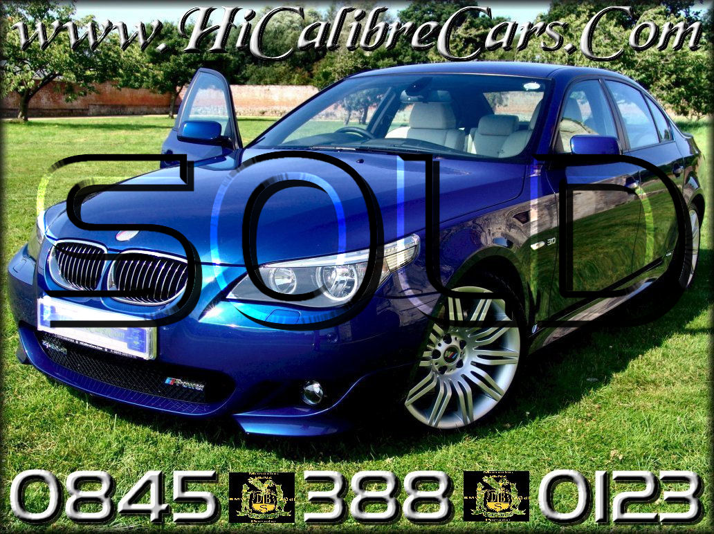 2007 BMW 535d M-Sport Twin-Turbo Diesel 4 Door Saloon, 6 Speed Automatic. 3.0 Litre, In-Line_6 Cylinder 24-Valve DOHC, 286BHP / 580Nm Bi-Turbo DIESEL. One Previous Owner with F/BMW/S/H and 28387 miles. There is no other car that can impress more in combining sporty comfort with luxury than the Bi-Turbo 535d M-Sport Saloon. Finished in Le Mans Blue Metallic with White-Cream Leather, this 5-Series flagship luxury sports saloon is without equal. As such it rivals models such as the Mercedes-BENZ’ E320CDI and Audi’s A6 3.0TDI and they are sadly put to shame when placed on a racetrack side by side. This modern Diesel is now the undisputed king of the black top. SHE JUST HAD BMW 124-POINT INSPECTION + WITH FULL SERVICE & ALL OILS CHANGED & SERVICE BOOK STAMPED UP BY BMW. 1-OWNER. EXTENSIVE SPEC INCLUDES LATEST ELECTRONIC i-DRIVE SYSTEM, SATNAV PROFESSIONAL, 19”, 10-Twin Spoke Spider M-Sport Designer alloys/ Electronic Head-Up Display on Windscreen-Day & Night/ Lane departure warning system/ FRONT+REAR PARKING SYSTEM WITH WIDESCREEN DISPLAY, BMW INDIVIDUAL OPTIONS WITH “BEST-VEHICLE” DESIGNATION, M-SPORT PACK, DVD MULTIMEDIA EXTENSIONS & COLOUR SCREEN, RAIN SENSORS + AUTO LIGHT ACTIVATION SYSTEM. M-AERODYNAMIC BODY STYLING, M-SPORT SUSPENSION, TEMPOMAT WITH BREAK FUNCTION, PURE SILVER BMW 535D DESIGNO BADGING IN CABIN. M-SPORT REAR SPOILER, TRACTION CONTROL+ESP+ABS+EBD+DTC+ASC, TEMPOMAT, DESIGNO BURR WALNUT DÉCOR TO INTERNAL CABIN AREAS, BLUETOOH PHONE LOGON VIA I-DRIVE WITH NEW SONY ERICSSON W950I BLUETOOTH CAMERA PHONE, FRONT BUMPER FOG + SPOT LIGHTS, M-SPORT + M-TECH CHROME BADGING, RAIN SENSORS, DESIGNER M-TECH INTERIOR TRIM. SERVO-TRONIC POWER STEERING/ BMW-ASSIST, M-POWER MULTI-FUNCTION STEERING WHEEL, BMW CONNECTED DRIVE-ASSIST/ONLINE SYSTEM, HEATED FRONT SPORTS SEATS. BMW-ASSIST. LARGE VOLUME DIESEL TANK. THE LIST GOES ON & ON. PLEASE ASK FOR COMPREHENSIVE SPEC SHEET AS WELL AS A PRESENTATION CD ON THE CAR.