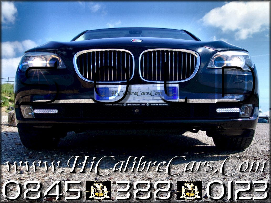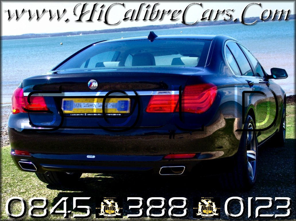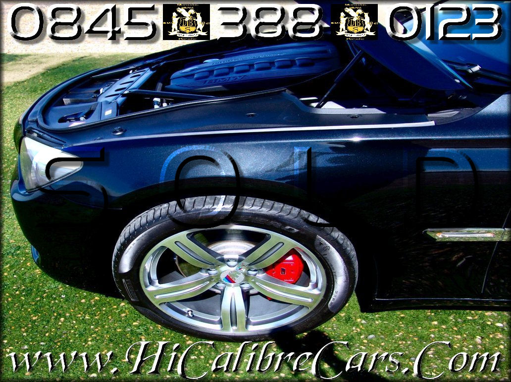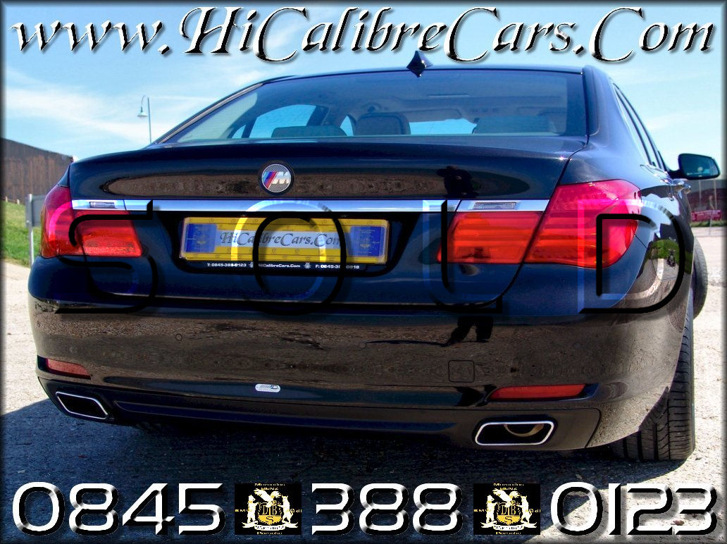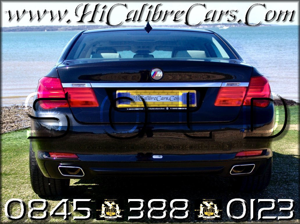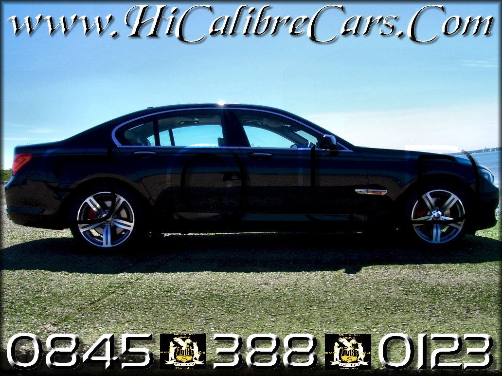 \\VAT Qualifier// 2010[60] BMW 740d [F-01] Twin-Turbo Diesel FaceLIFT 4 Door saloon, 8 Speed Automatic. 3.0 Litre, 6 Cylinder In-Line 24-Valve DOHC, 306BHP/600Nm, Sequential Twin-Turbo DIESEL. This mega-spec Twin-Turbo capable of delivering a cool 306BHP with a gigantuous effortless 600Nm of torque has now been SOLD. She is finished in SAPPHIRE Black Metallic with exclusive Oyster White/Black Dakota leather interior. There are currently not many comparable examples out there on the net that comes close to similar in magnitude of spec or stature to this top of the range of F01 currently advertised in the UK. She is referred to by BMW as best vehicle with individual paint & upholstery options. This brutal yet beautiful powerhouse, is a truly lively and sybaritic phantom-in-motion with a unique style with elegance that is the true and incomparable stealthy BMW Luxury saloon of all time. Her true stomping ground is unquestionably the motorway where this flagship par excellence; is effortless, quiet and cocoon like and is the ideal intercity express that easily beats taking the plane on distances of up to 300 miles. Her power plant is turbine smooth until you push the throttle two-thirds of the way toward the firewall when she suddenly erupts unleashing pure unadulterated Twin-TURBO power of over 300BHP to its rear wheels sling-shooting this gorgeous 2.5 ton luxo-screamer 0 to 60mph in an incredible 6.0 seconds or in simpler terms; nought to delicious in no time at all. This überdiesel is the epiphany of blend and functionality. This car is a technological showcase for BMW, a company that now feels confident enough to put its rivals ruthlessly in their place. As a candidate for one of the best luxury cars in the world, it's tough to think of anything that can top this 3.0 litre 40mpg rear-wheel drive motorway king. Add to this a gigantic twisting force in the form of humongous mid-range torque of 600Nm enough to lug an oil rig off its moorings plus a deliciously snarly twin exhaust that puts a manic grin on any ones face, you effortlessly accelerate like a cheetah on the hunt, your senses are re-assured as this power is effortlessly and flawlessly poured through her rear paws. An incomparable stunner created by Munich with no Achilles heel - simple. Her extensive specification includes: Smoked Glass Sun-Roof/ SatNAV Professional/ Reverse Parking Aid Colour Camera/ Front Night Vision Colour Camera/ Digi_TV/ Lane Departure Warning System/ Surround Sound system with MultiMedia interface with Digi-DAB Radio / Designo side air-intake-vents/ DVD movie player/ Front & Rear parking sensors with colour displays/ Park speed sensitive power assisted steering/ Bluetooth GSM Phone controlled via iDrive interface/ CD player with MP3 facility and BMW Professional Multimedia Navigation system featuring shortcut and Favourite buttons, and multi-channel amplifier with BMW audio system/ COMBOX Controller/ ABS+ BAS+ ESP +SBC/ Full AutoClimate Control/ Auto-dimming interior & exterior mirrors/ Bi-XENON lights with Cornering/Bending Light Function + Wash + Dynamic Range adjustment/ Daylight Running Lights/ New Designo Multi-Spoke 19” Black Anthracite & Diamond-Cut Highly Polished Alloys with Hi-Performance tyres/ Tinted glass + Privacy Glass/ Interior Motion Sensors/ Electric Heated front seats height + lumbar adjustment/ Electric windows with 1-touch facility/ Designo HCC pure silver badging in cabin/ 6-CD/DVD multi-changer/ BMW Connected Drive Assist with TeleServices/ Rain Sensing wipers/ 8-Speed Automatic Transmission with Selectric Gear Change + Tiptronic Paddle-Shift Functions/ Tempomat with Brake Function/ iPhone & iPod Connections with USB Interface/ Engine Start-Stop button with Key insert function/ Hill Start Assist/ Valid SERVICE Pack / Adaptive brake lights/ Voice control system/ Tyre pressure sensors/ Height + Reach + Rake adjustment steering column/ Luxury MSport Multi-Function steering wheel/ Fine Wood trim Fine-Line High Gloss Finishes finishes/ Comfort access seating with memory functions.. Extras list on this car goes on & on. Please click on links below for detailed information on the car including Specification sheet, V5C and a captivating narrative on this stunner in order to appreciate its incredible value ::::::::> To view over 90 High Definition images please clink on the Link ::::::::> http://www.hicalibrecars.com/2560x1600/bx60xpc.php