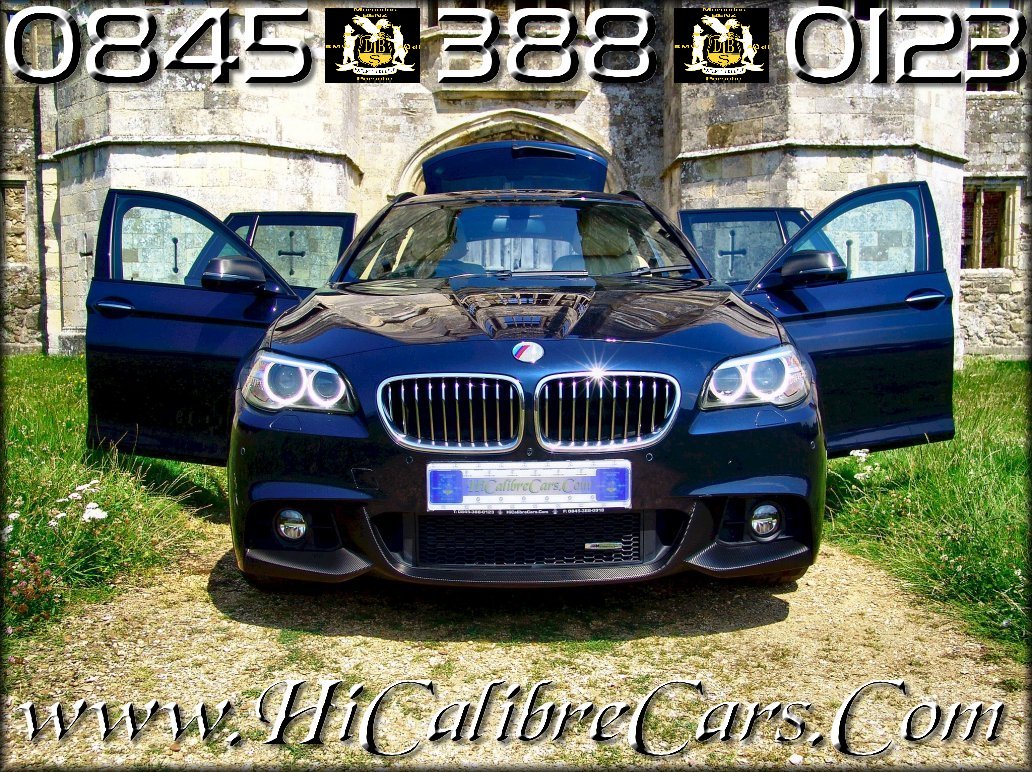 2013[63] BMW [F11] 535d M Sport "Twin-Turbo Diesel" 5 Door Touring Estate, 8 Speed Automatic. 3.0 Litre, 6 Cylinder In-Line 24-Valve DOHC, 306BHP/600Nm, Sequential Twin-Turbo DIESEL. This incredibly HighSpec F11 is a 1-previous owner car from NEW with warranted 27000miles and F/BMW/S/H has now been SOLD...!. She is finished in stunning Imperial Blue Xirallic with Venetian Cream/Beige Dakota leather with finewood trim and fineline anthracite interior. She is spacious, sporty, refined, desirable, well built, cleverly judged facelift. What a car…! If you’re after a diesel estate and only the best will do, then the BMW 5 Series estate 535d M Sport is the one for you. It’s the fastest (0-60 in 5.2 secs) and the most expensive of the range, powered by a 3.0-litre six-cylinder TwinTurbo delivering close to 310bhp. The 535d is a powerful car and certainly feels it on the road. A muscular 630Nm of torque means rapid acceleration with only a twitch of your right toe and this superb F11 is the tool for safe, stress-free overtaking. There is currently nothing out there that even comes close to similar in magnitude of spec or stature to this top of the range of all F11 models currently advertised on the NET in the UK. She brutal yet beautiful and is a truly lively and sybaritic phantom-in-motion with a unique style with elegance that is the true and incomparable stealthy estates of all time. She has great chassis dynamics, immense carrying ability, superb comfort and wonderful engines. And with our model 535d M Sport, those dubious looks have been replaced by something far more graceful, stunning and enduring. It’s a wonder sometimes that everyone else doesn’t just pack up and head off home. She has been one the all-time greats in every age of its existence, the 5-Series Touring seems to have a finger firmly in every pie, with great chassis dynamics, immense carrying ability, superb comfort and wonderful engines. Despite all that performance the engine is quiet and refined and the eight-speed automatic gearbox it’s paired with as standard is excellent. It even sounds nice, not just good for a diesel but good full stop. No agricultural clatter here, just a smooth, muted warble. Her extensive specification includes: Lashings of Venetian Beige Dakota leather with SPORTS seats/ Front View Colour Camera with auto-switch/ SatNAV Professional with latest updates/ Reverse Assist Parking Aid Colour Camera/ Panoramic glass twin aspect sun roof/ Digi_TV/ Surround Sound system with Multi-Media interface with Digi-DAB Radio / Alarm System (Thacham 1)/ DVD movie player/ Front & Rear parking sensors with colour displays/ Park speed sensitive power assisted steering/ Bluetooth GSM Phone controlled via iDrive interface/ DVD player with MP3 facility/ ABS+ BAS+ ESP +SBC/ Full Auto-Climate Control/ Auto-dimming interior & exterior mirrors/ XENON Headlights with Cornering/Bending Light Function + Wash + Dynamic Range adjustment/ Daylight Running Lights/ 18" M Double-spoke style 613M Diamond Cut alloy wheels in Anthracite BlueBlack with Hi-Performance Run-Flat tyres/ Sun Protection Glass/ Carbon-fibre effect finishing to front and rear bumpers/ Interior Motion Sensors/ Electric Heated front seats height + lumbar adjustment/ Carbon-fibre effect finishing to Rear Spoiler/ Electric windows with 1-touch facility/ Extensive “M” badging in cabin, rear tailgate, front wings, front grill and bonnet/ 6-CD/DVD multi-changer/ BMW Connected Drive Assist with TeleServices/ Rain Sensing wipers/ 8-Speed Sports Automatic Transmission with Selectric Gear Change + Tiptronic Paddle-Shift Functions/ Tempomat-Cruise Control with Brake Function/ iPhone & iPod Connections with USB Interface/ Engine Start-Stop button with Keyless-GO and ECO Start-Stop function/ Hill Start Assist/ Adaptive brake lights/ Carbon-fibre effect finishing to door mirrors/ Voice control system/ Tyre pressure sensors/ Height + Reach + Rake adjustment steering column/ LED Front Fog lights/ Luxury M Sport Multi-Function steering wheel/ Carbon-fibre effect finishing to Roof Rails/ SPORT Suspension/ Power operated Tailgate with Open/Close Function/ Comfort heated electric seating with memory functions/ BMW Emergency call with Online & TeleServices/ BMW Applications Interface. Extras list on this car goes on & on - Please click on links below for detailed information on the car including Specification sheet, V5C and a captivating Narrative on this stunner in order to appreciate its incredible value. Do not miss this unique opportunity of experiencing and owning this stupendous driving machine. A car conceived and built for the special in YOU!. An incredible car with an unbeatable value. That is the ingenious of MUNICH in living form, which is what makes an everyday reality of this the Ultimate Driving Machine of our modern era. By clicking HPI, you will see full details of an HPI check we had carried out on the car showing the car to be completely free of finance, accidental damage or any other untoward record attached to it. Same file will also give you full details of the “Environmental Sheet on the car” giving details of fuel consumption and Road Funds Licence annual costs..::::::::> To view over 90 High Definition images please clink on the Link ::::::::> http://www.hicalibrecars.com/2560x1600/yj63caa.php
