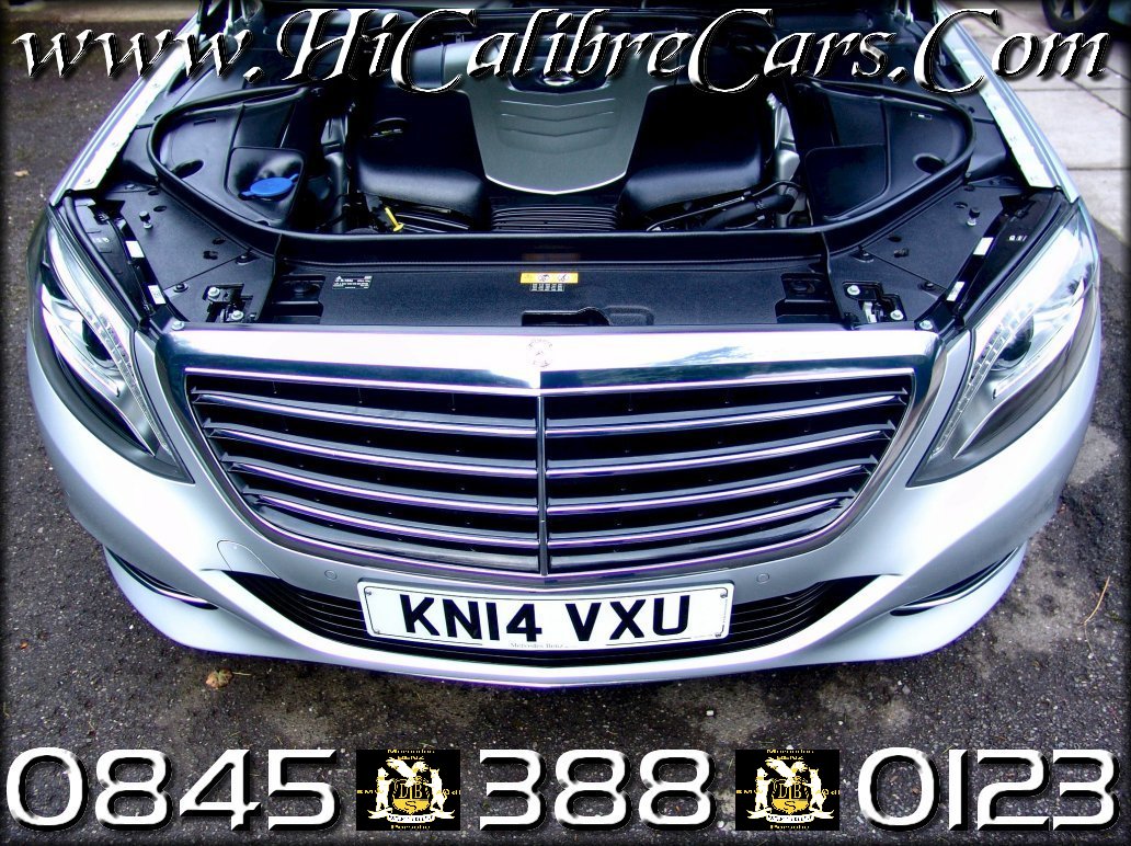 2014[14] MB S350 L BlueTEC Executive SE-Line LWB Limousine, 4 Door Saloon, 7-GTronic Plus [Start/Stop] Automatic. 3.0 Litre v6 24-Valve DOHC Turbo-DIESEL, 258BHP/620Nm. One Owner with F/MB/S/H and warranted 11000 miles from new. This exquisite S-Class oil burner, finished in unmarked BRIGHT Silver metallic with unblemished Antharcite soft nappa leather interior has now been SOLD!.. There is no other high-end car that can impress more in combining sporty comfort with luxury and economy than the S350 L BlueTEC Turbo-Diesel. This latest incarnation within the S-Class range has been draped with so many tasteful design enhancement features that it would easily fill a sizeable novel. The S-Class is the flagship luxury saloon within the Mercedes-Benz range. As such it rivals models such as the BMW’s 7-Series, Audi's A8, and of course the VW Phaeton. In this country, nine out of ten S-Class buyers opt for the diesel option, so here is the good news - the latest version of Mercedes' 3.0-litre V6 oil burner slashes CO2 emissions to an incredibly low 148 g/km, becoming one of the biggest sellers and accounting for over 60% of its sales in this country. She is tough and she is strong. This extremely refined and frugal diesel is the most sensible choice by far when making a decision to purchase, resulting in the highest residual values of any luxury saloon. The modern diesel is now the undisputed king, powering the luxury car market. The performance potential of this turbo-charged 3.0 litre V6 24valve DOHC diesel power plant will induce sweat into the most able A8 3.0 Litre and/or the 3.0 Litre 730d driver. It packs such a bracing punch with its 258-BHP by courtesy of its staggeringly fierce a là 620-Nm torque that it gives her an exhilarating pace of 0-60mph in less than 6.6 seconds which is simply breathtaking. She is smooth and plush, and the ride and handling faithfully combines a cosseting comfort with decent feedback and control through her effortless steering. That is quite a feat in such a big car. She may be grand, but she shrinks around you, hugging you and making you feel as if you are driving a sporty C350CDI saloon. This six-cylinder cracker, with a burble that is truly addictive, results in an impressive 0-60mph that growls her way as soon as you hit passed the firewall in just 6.6 seconds with a top speed reaching in excess of 155mph. Now for a car that is well over two tons in weight you must admit she is no slouch and that is impressively agile performance pure and simple. Furthermore, this hugely capable and talented all-rounder, particularly in this DIESEL guise is arguably the best diesel luxury car today providing you with an excellent all round [combined] fuel economy of around 51.4mpg. Combine this with Mercedes-Benz's legendary engineering ingenuity and pioneering heritage, with the matching sportiness of its electronically controlled suspension, the new S350 L BlueTEC's modern body construction with its elegant interior and hand stitched leather décor and you then go and add to that ergonomically designed plush seats in beautifully soft black leather and you end up having in this S350, a car that is setting the highest standards in performance, luxury and driving excellence. When you then are comfortably settled behind her new design, re-shaped all-leather steering wheel with her plethora of buttons you cannot help but imagine you are about to pilot a 747 with enough on-board computing power to help you take-off graciously. With a myriad of manufactured options & extras so skillfully placed around the dashboard and centre console all desirably generating confidence instead of rivalry, sensation instead of sensationalizing. These are the real attributes that make the S350 L BlueTEC SE-Line, the true luxury DIESEL performance saloon of the 21st century. An incredible car with an unbeatable value. That is the ingenious of SINDELFINGEN in living form, which is what makes an everyday reality of this Beauty with Driving Excellence.Why not be part of this incredibly enjoyable driving experience, and be part of Mercedes-Benz’s world of luxury. A unique opportunity of experiencing and owning this stupendous driving machine conceived and built for the special in you! The List of options and extras on this car just goes on and on. Please please click on link View Options & Features below. Extras list on this car goes on & on. Please click on links below for detailed information on the car including Specification sheet, V5C and a narrative on this stunner in order to appreciate its incredible value. By clicking HPI, you will see full details of an HPI check we had carried out on the car showing the car to be completely free of finance, accidental damage or any other untoward record attached to it. Same file will also give you full details of the “Environmental Sheet on the car” giving details of fuel consumption and Road Funds Licence annual costs. ::::::::> To view over 90 HIGH DEFINITION images please clink on the Link ::::::::> http://www.hicalibrecars.com/2560x1600/kn14vxu.php