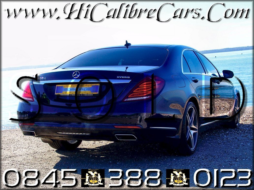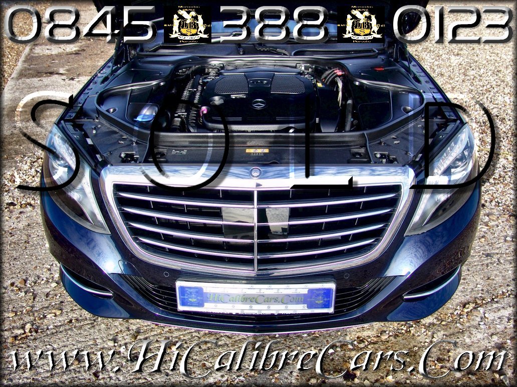 2014 MB S400L HYBRID SE-Line, 4 Door Executive, 7 Speed Automatic. 3.5 Litre v6 24-Valve DOHC Petrol, 333BHP/370Lbf-Ft. This One Owner with F/MB/S/H gem with warranted 14000 miles from new has now been SOLD!. This exquisite S-Class Petrol/Electric HYBRID, has been finished in unmarked CAVANSITE Blue metallic with unblemished Antharcite soft nappa leather interior. It is believed that no other high-end car that can impress more in combining sporty comfort with luxury and economy than the S400 L HYBRID Petrol-ELECTRIC. This latest incarnation within the S-Class range has been draped with so many tasteful design enhancement features that it would easily fill a sizeable novel. The S-Class is a flagship luxury saloon within the Mercedes-Benz range. The 2014 Mercedes-Benz S-Class S400L HYBRID is a byword for luxury saloon excellence and is widely regarded as one of the best cars in the world. It goes without saying - expectations are incredibly high. Luckily this 6th generation model proves more than up to the task of maintaining effortless superiority, now with cheaper running costs, a host of incredibly clever technology and class leading engine options (including 3 hybrid variants). Lion’s share of the power (306bhp to be precise) comes from the NEW 3.5-litre V6 petrol engine up front. That’s joined by a 27bhp electric motor and both drive the rear wheels. Although the S400 can operate under the electric motor’s power alone, that’s more or less limited to low-speed gliding around car parks (making sure you don’t run anyone over in the process). The V6 engine joins in pretty quickly if you extend your right foot very far and the electric motor’s main job is really to work in conjunction with the engine. It can provide a supplementary power boost if you need to accelerate hard, and it can also help slow the car under braking, charging the batteries in the process. Helpfully, because the S400 uses fancy pants lithium-ion batteries, they’re compact enough to fit inside the engine bay so you don’t get the same impact on boot space that affects many other battery-packed hybrids. She is tough and she is strong. Despite a kerb weight of just under two tones this big Merc can pick its petticoats up and really get a move on if you ask it to, the V6 making a pleasant muted growl as it does so. It packs such a bracing punch with its combined 333-BHP via its Petrol /electric motor by courtesy of its 370lb-ft torque that it gives her an exhilarating pace of 0-60mph in less than 6.6 seconds which is simply breathtaking. She is smooth and plush, and the ride and handling faithfully combines a cosseting comfort with decent feedback and control through her effortless steering. That is quite a feat in such a big car. She may be grand, but she shrinks around you, hugging you and making you feel as if you are driving a sporty C350CDI saloon. This six-cylinder three and a half litre cracker, with a burble that is truly addictive, results in an impressive 0-60mph that growls her way as soon as you hit passed the firewall in just 6.6 seconds with a top speed reaching in excess of 155mph. Now for a car that nearly two tons in weight you must admit she is no slouch and that is impressively agile performance pure and simple. Combine this with Mercedes-Benz's legendary engineering ingenuity and pioneering heritage, with the matching sportiness of its electronically controlled suspension, the new S400 L HYBRID's modern body construction with its elegant interior and hand stitched leather décor and you then go and add to that ergonomically designed plush seats in beautifully soft black leather and you end up having in this S400 Limousine, a car that is setting the highest standards in performance, luxury and driving excellence. When you then are comfortably settled behind her new design, re-shaped all-leather steering wheel with her plethora of buttons you cannot help but imagine you are about to pilot a 747 with enough on-board computing power to help you take-off graciously. With a myriad of manufactured options & extras so skillfully placed around the dashboard and centre console all desirably generating confidence instead of rivalry, sensation instead of sensationalizing. These are the real attributes that make the S400 L HYBRID SE-Line, the true luxury Hi-End performance saloon of the 21st century. An incredible car with an unbeatable value. That is the ingenious of SINDELFINGEN in living form, which is what makes an everyday reality of this Beauty with Driving Excellence.Why not be part of this incredibly enjoyable driving experience, and be part of Mercedes-Benz’s world of luxury. A unique opportunity of experiencing and owning this stupendous driving machine conceived and built for the special in you! The List of options and extras on this car just goes on and on. Please please click on link View Options & Features below. Extras list on this car goes on & on. Please click on links below for detailed information on the car including Specification sheet, V5C and a narrative on this stunner in order to appreciate its incredible value. By clicking HPI, you will see full details of an HPI check we had carried out on the car showing the car to be completely free of finance, accidental damage or any other untoward record attached to it. Same file will also give you full details of the “Environmental Sheet on the car” giving details of fuel consumption and Road Funds Licence annual costs. ::::::::> To view over 90 HIGH DEFINITION images please clink on the Link ::::::::> http://www.hicalibrecars.com/2560x1600/ou14vng.php