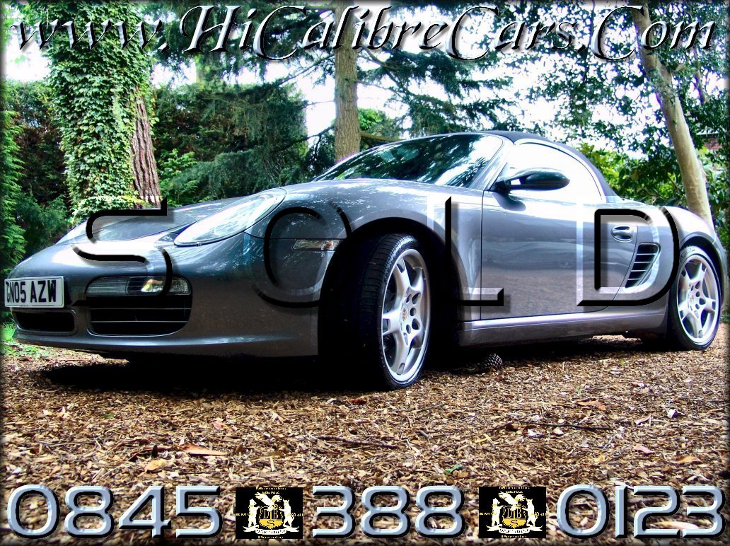 PORSCHE–2005 [05] BOXSTER-S (987) –2 Door Roadster 3.2 Litre, Flat-6i 24Valve MPFI DOHC, 280BHP, 6 Speed Manual. THIS STUNING MEGASPEC BEAUTY with F/P/S/H HAS NOW BEEN SOLD. SHE can only be described as HAVING a DELICIOUSLY CURVACEOUS BODY Finished in exquisite SEAL Grey Metallic with special BLACK leather interior. A MEGAspec car where the reality truly lives up to expectation in this stupendous SIX‐speed, rear‐drive manual. EXTRAS include but NOT limited to: 6-Speed Manual Transmission/ Anti-Lock Braking System/ Airbags/ CentrE high mounted stop light/ Top HI-Fi System with CD/ RDS + CD Stacker with Integrated Surround Sound Speakers/ ABS + ABD + ASR + msr/ TRACKER System/ PASM-Porsche Active Suspension Management System/ PSM Porsche Stability Management System/ DVD SATNAV Auto-Changer in front boot/ Automatic Air Conditioning System/ PSNS-Porsche Satellite Navigation System/ Porsche Chrono SPORT Pack/ PORSCHE Red CALIPERS/ Alarm/immobilizer/ BOXSTER S Logo on door entry guards/ Automatic roll over protection/ 987 Facelift CAYMAN Air intakes Front & Sides/ TEMPOMAT Cruise Control/ 19" DESIGNO 5-SPOKE CARRERA S ALLOYS WITH HI-PERF LIKE NEW TYRES @ £1000 per Corner/ PCM Porsche Communications Package/ BOSE Hi-Fi Surround Sound System / Headlight Chrome washer jets/ PAS+ASR+ABS+ABD/ Porsche CD Player + 2CD Storage Compartment/ Electric windows one touch open/close/ Electrically heated + operated door mirrors/ Leather Sports Steering Wheel/ Fully lined Black POWER Hood/ BOXSTER S Logo at rear in Titanium Silver/ PORSCHE Weissach CREST’s inside & out. THE LIST OF EXTRAS GOES ON & ON. PLEASE ASK FOR A COMPLETE SPEC SHEET AND PRESENTATION CD ON THIS INCREDIBLY UNIQUE STUNNER.
