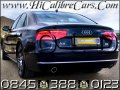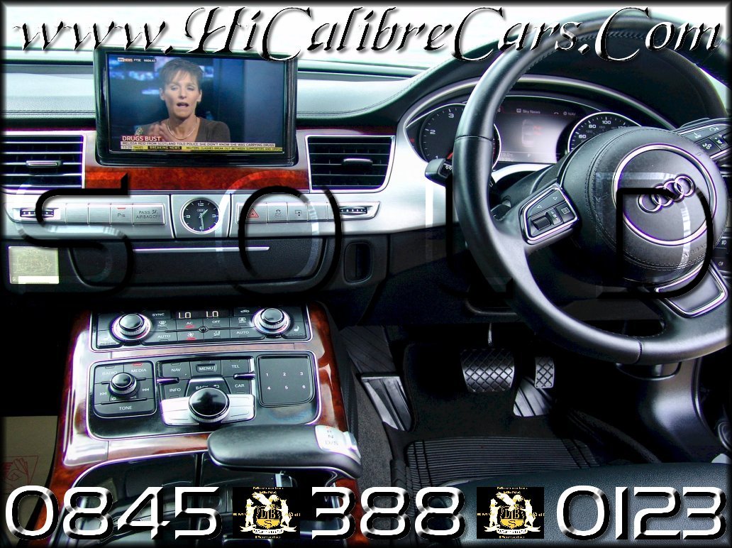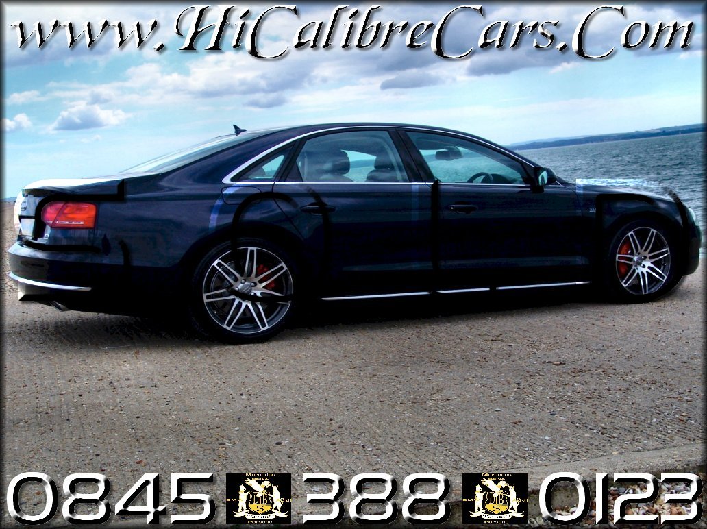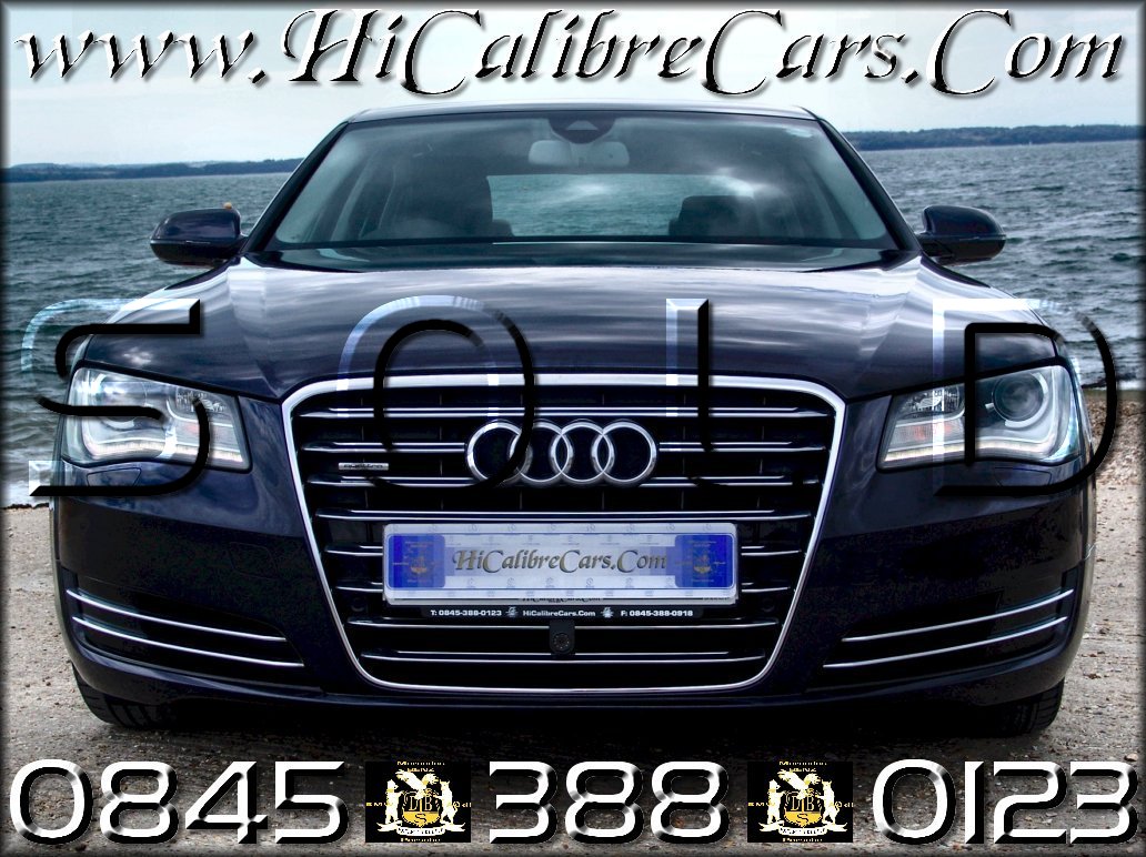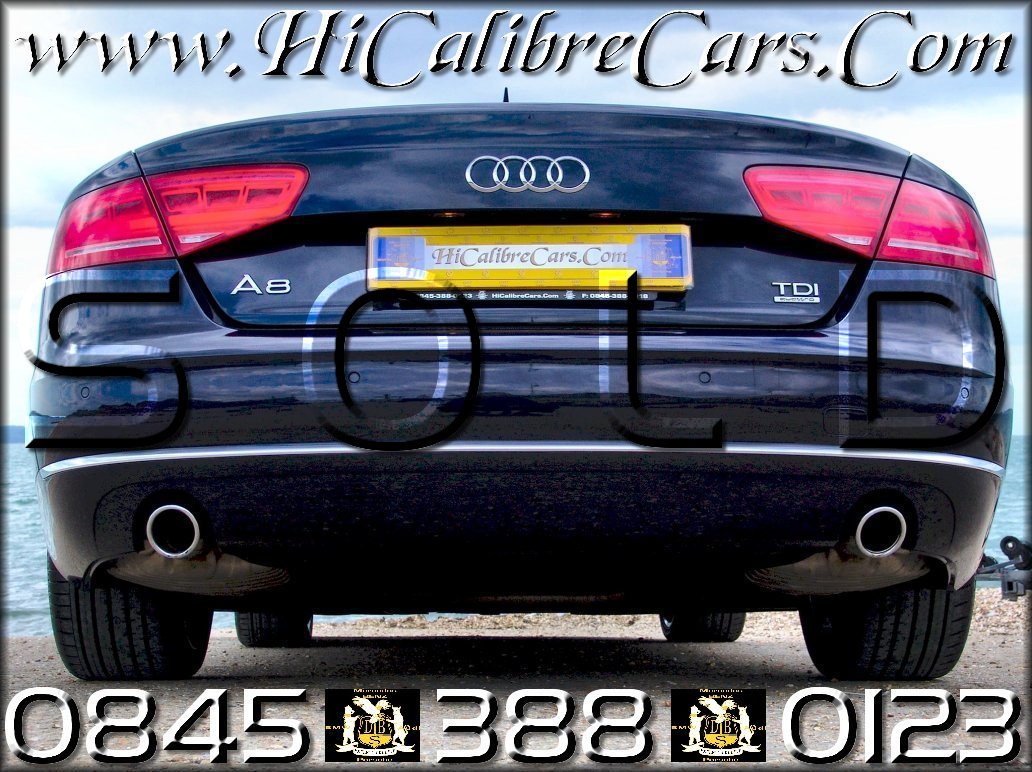 \\VAT QUALIFIER// 2010 [60] AUDI – A8 4.2 TDi Quattro – SE FaceLift 4-Door Saloon. v8 32valve Turbo DIESEL, 350BHP, 800Nm 8Speed Tiptronic Auto. This one owner Audi Flag-ship has now been SOLD. She was so highly specified that no other car currently advertised on the net came anywhere close to similar in magnitude of spec and exclusivity. She comes with F/A/S/H + 32500 warranted miles. Finished in exquisite Night Blue Pearl metallic with soft Black/Grey nappa supple leather interior. This like new MEGASPEC Audi flagship has nothing out there that even comes close to similar in magnitude of Spec and Exclusivity. When new she is believed to have cost well over £75K. The car has been fully serviced from new on 3 separate occasions by Audi and the last service was carried out only recently. The exclusive spec includes Front Night Vision Colour Camera/ Rear Vision Colour Colour Camera with guide lines & sensor Displays/ HDD Satellite Navigation System Pro MID with Touchpad controls/ Digi-TV/ Digi-DAB Radio/ Front & Rear Park distance control with PICTOGRAM Displays/ Multi-Media Entertainment System with iPhone, iPod, iPad control/ DVD – Movie Player/ Bluetooth Telematics GSM phone system/ Sports suspension system/ NEW 20” Seven-Twin spoke AUDI Designer alloys with 275/35 ZR20 102Y High Performance Extra Load Sports CONTACT-2 tyres engineered by CONTINENTAL in Germany/ Flat Tyre Indicators/ Keyless-GO with Finger Press Start/Stop button, Open/Close functions/ LED Day Running Lights/ Bluetooth Audio Feed System/ BOSE S/S System with Voice Control/ Electric Pop-up Sun Roof/ DriveSelect with Comfort, Auto, Dynamic Electronic Chassis Control modes/ Electro-Mechanical Parking Brake/ MMI ‐ Multi Media Interface control system with HDD/ Six CD/DVD Auto‐changer for movies & MP3 Player CDs/ Xenon Dynamic Bending Headlights/ Adaptive 4-corner air suspension with electronic shock absorption control/ Comfort Sports Seats with complete electromechanical control functions/ Regenerative Breaking System 12.5V/ Boot Lid auto release with soft-touch servo-close function/ Electronic climate control (ECC)/ Heated seats with lumbar functions with individual controls/ Memory Seats in the Front - Driver + Passenger. LIST GOES ON & ON. This one owner Audi Flag-ship has now been SOLD. - PLEASE click "View Options & Features" below for complete Options & Extras DATA sheet & click on "View Narrative" below for a Full and descriptive as well as informative NARRATIVE on this INCREDIBLY UNIQUE bespoke STUNNER. =>=>=> To view over 90 HIGH DEFINITION images please clink on the Link =>=>=> http://www.hicalibrecars.com/2560x1600/ld60lyh.php