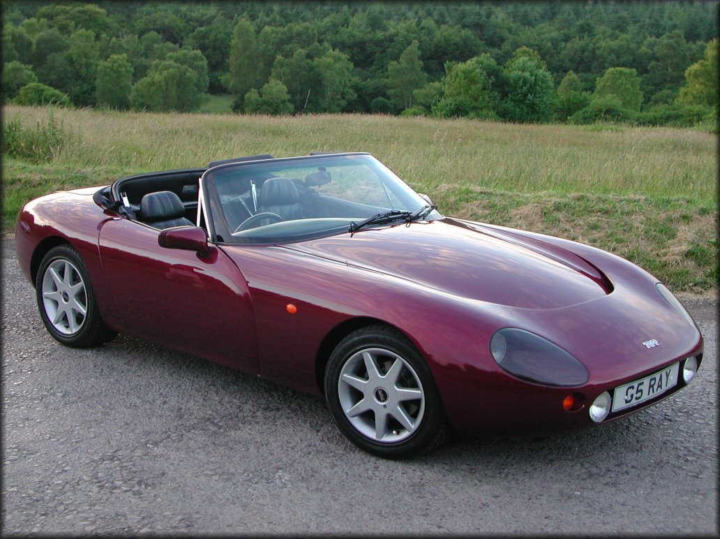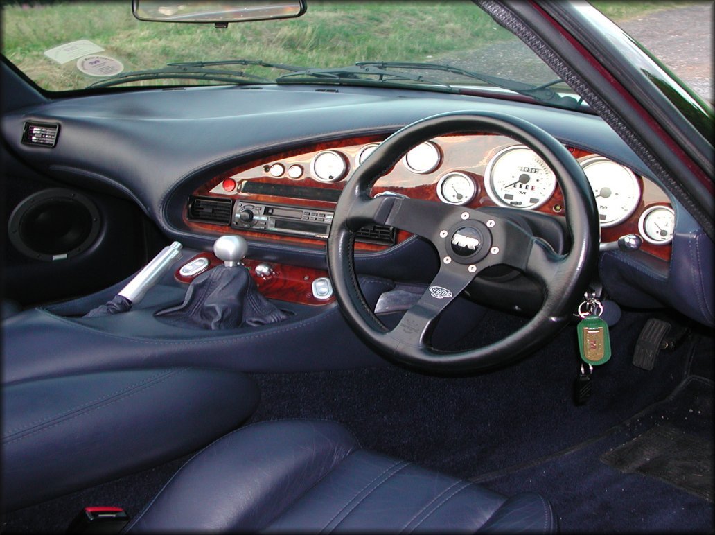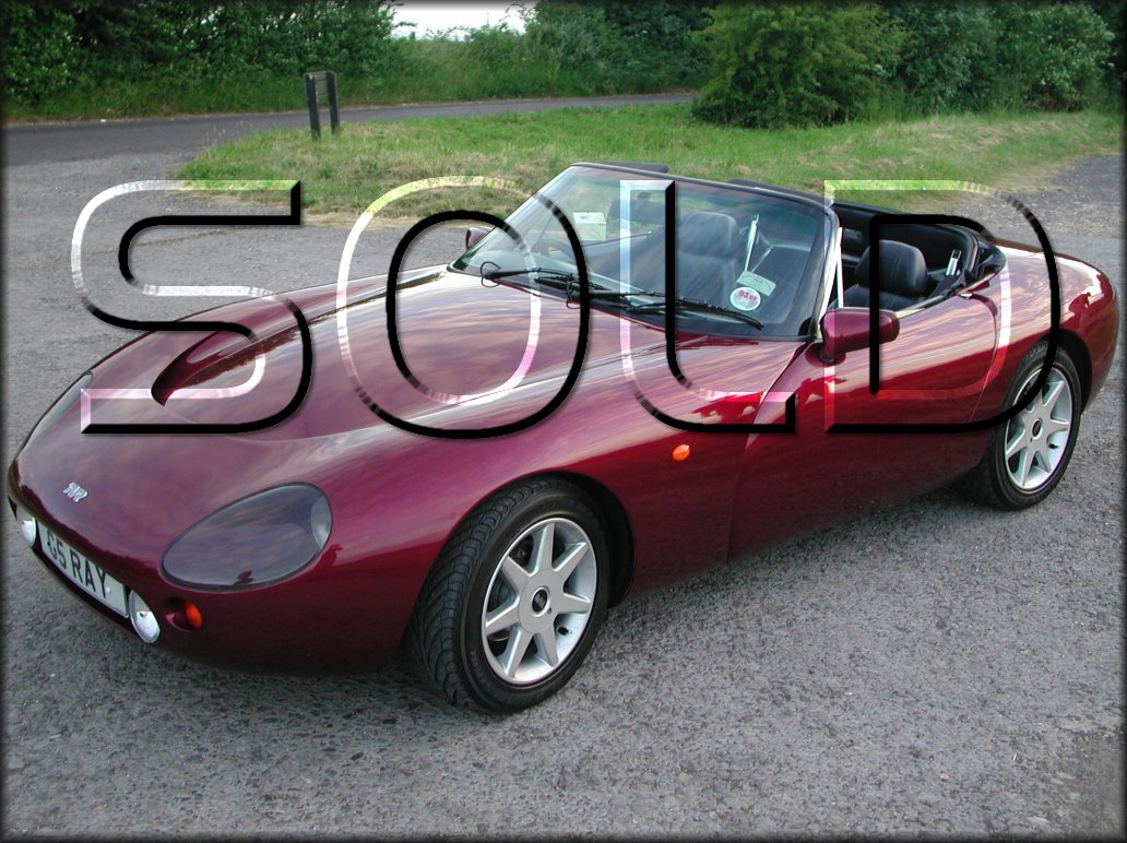 TVR – Griffith 500 SPORTS 1996 [N], 5 Litre Cabriolet 340BHP-V8i. One Previous Owner. F/TVR/S/H. 34,000miles. Finished in Brilliant attractive Porsche Arena Red and tastefully complimented with Prussian blue full leather interior trim. This exhilarating Powerhouse on wheels has a Mohair Prussian Blue Cabriolet Top with 24k Gold Plated tvr-Griffith 500 badges at front and rear. A breathtakingly beautiful car capable of 0-60mph in 4.1secs on brand new L.P. BridgeStone SO3s. The car is also fitted with: £2000 Alpine RDS sound system with 6CD Stack and Genesis Amplifier and 6 top-quality surround sound speakers with other audio enhancements/ 5-Speed_Close ratio manual gear box/ Simple one-touch High Quality Mohair CABRIOLET Roof finished in Prussian blue/ TVR 7-spoke Alloys/ Leather Bound Sport Steering Wheel/ Prussian blue Full Leather Interior Trim/ Interior Leven Technology Trim Accessories to Dashboard/ Centre Console & Gear Lever/ Magnolia Dials/ Electric windows/ Electric Wing Mirrors/ Power Brakes/ Stainless Steel Sports Exhaust System throughout has been designed in order to enhance performance significantly/ Meta M36T Engine Immobiliser & M99T Theft Alarm System with GEC Plessey MK4 microwave/ Spot Lights/ Map Reading Lights/ A fully integrated Hi-Fi System consisting of Alpine TDA-7659R Head Unit with CHA-S604 Alpine 6 Stack Remote CD Changer and Tape Player/ Genesis Q240X 480Watt Power Amplifier driving 6No surround sound speakers/ The System is further complemented with an Alpine Full Function Audio Remote Control for your listening pleasure. AN INCREDIBLE CAR MUST BE DRIVEN TO BE BELIEVED.
